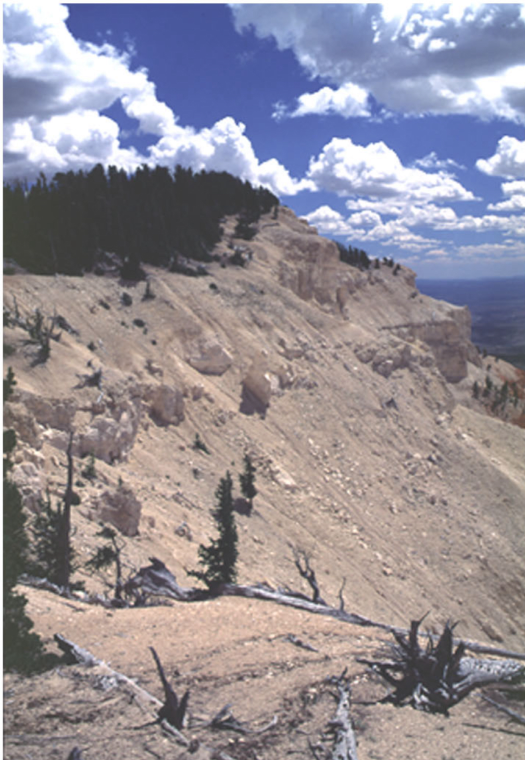 Largely unthreatened by direct human activities because of its largely inaccessible habitat (W. Fertig pers. comm. 2009, M. Madsen pers. comm. 2009). One occurrence appears to be in the vicinity of a trail to a scenic point, but in general trampling near trails is not a significant threat to the species because its steep, erodible habitat is not conducive to trail construction (M. Madsen pers. comm. 2009). Approximately 12% of occupied and potentially suitable habitat for the species within the Dixie National Forest is within 500 feet of routes open to motorized access (Madsen 2009), but again, direct impacts from vehicles are unlikely due to the low accessibility of sites. Rodriguez (2004) states that "this species is not affected by grazing because plants are generally on steep Claron limestone talus slopes where grazing does not occur." Furthermore, there are currently no issues with invasive species because the high calcium carbonate content of this species' preferred substrate creates harsh abiotic conditions in which only specifically-adapted plants can succeed (M. Madsen pers. comm. 2009). Ongoing drought: The Utah Division of Water Resources confirmed the Utah is now in "extreme" or "exceptional" drought.